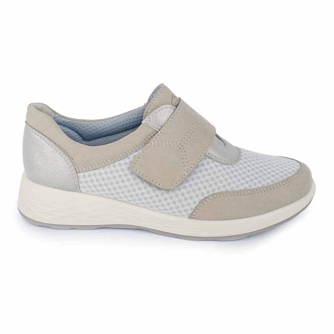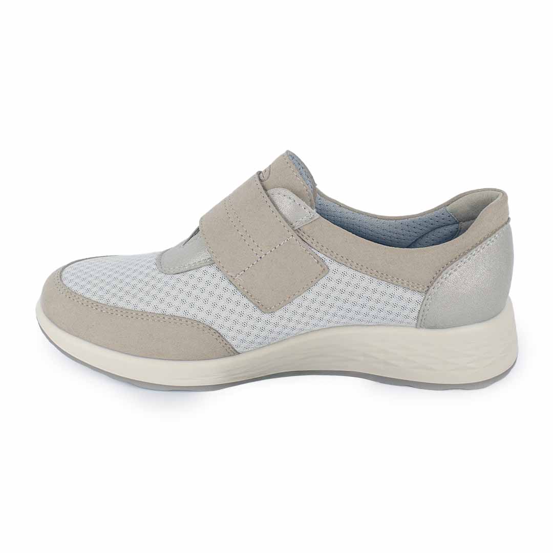 Este calzado combina material textil transpirable con refuerzos suaves tipo gamuza, ideal para mantener el pie fresco y cómodo durante todo el día. Su cierre ajustable de velcro facilita el calce y brinda mayor sujeción, mientras que la suela liviana y flexible aporta estabilidad en cada paso. Un diseño práctico y ligero, pensado para quienes priorizan bienestar sin renunciar a un estilo limpio y versátil.