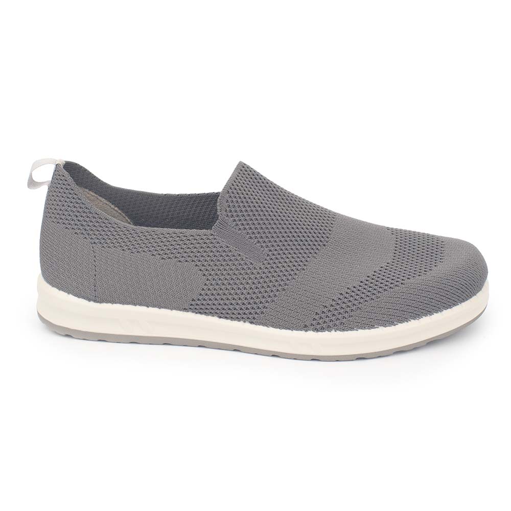 Tejido Adaptativo: La capellada de punto elástico en color gris antracita permite que el calzado se adapte instantáneamente a cualquier irregularidad del pie, siendo ideal para personas con sensibilidad o necesidades ortopédicas específicas.