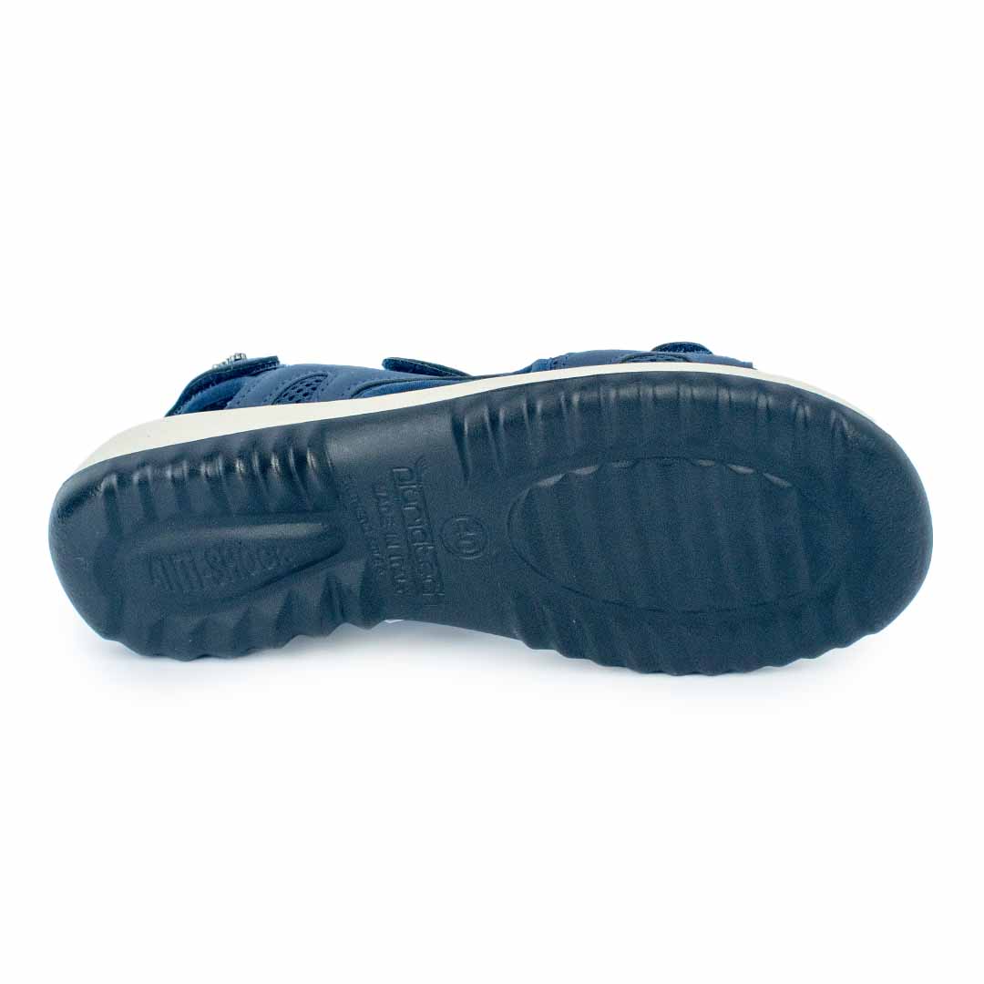 Esta sandalia combina lo mejor del confort anatómico con una estética limpia y moderna. Su doble sistema de ajuste —velcro en la parte delantera y hebilla metálica en el tobillo— garantiza un calce preciso, adaptable a diferentes formas de pie y niveles de hinchazón.