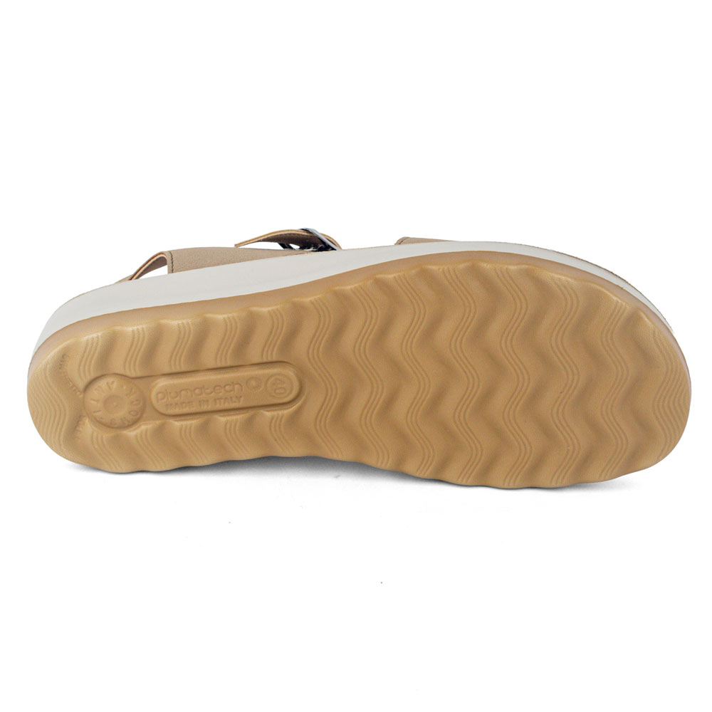 El empeine en tono beige claro y acabado suave aporta versatilidad y frescura, ideal para uso diario. La plantilla anatómica con efecto memoria sostiene el arco y amortigua la pisada, mientras que la suela con ligera cuña bicolor mejora la postura sin renunciar a la estabilidad.
