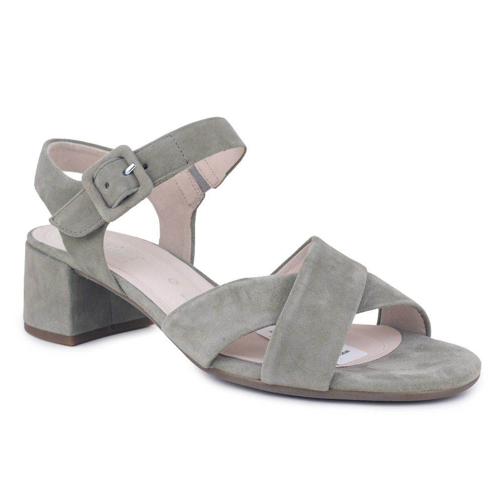 Elegancia natural con soporte excepcional. Esta sandalia de rauleder (ante suave) en tono verde combina estilo refinado y funcionalidad. Su diseño con correa ajustable en el tobillo asegura una sujeción firme y personalizada, mientras que la plantilla acolchada Gabor Comfort y la suela flexible ofrecen una sensación de ligereza en cada paso. Ideal para quienes buscan comodidad duradera con un toque de sofisticación.