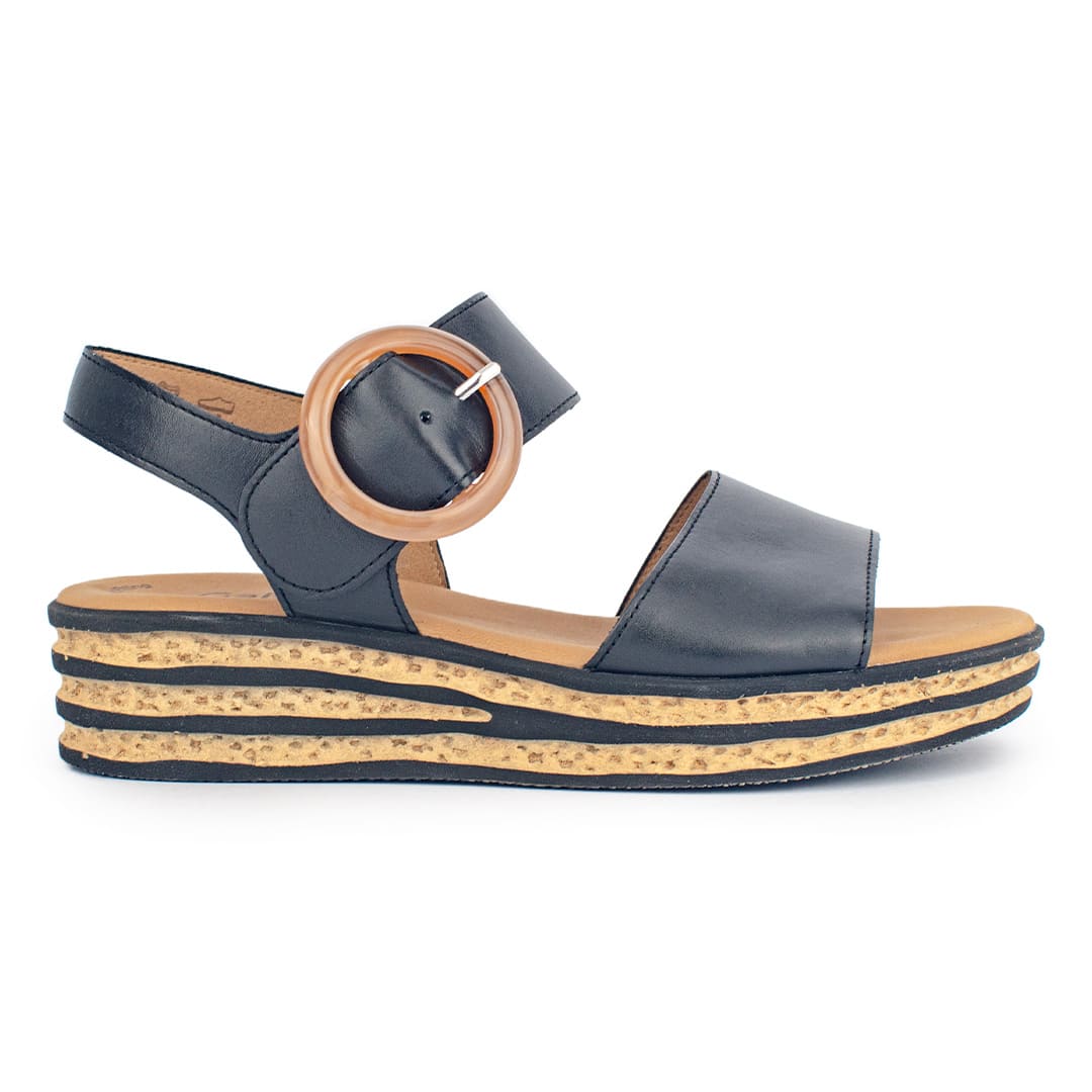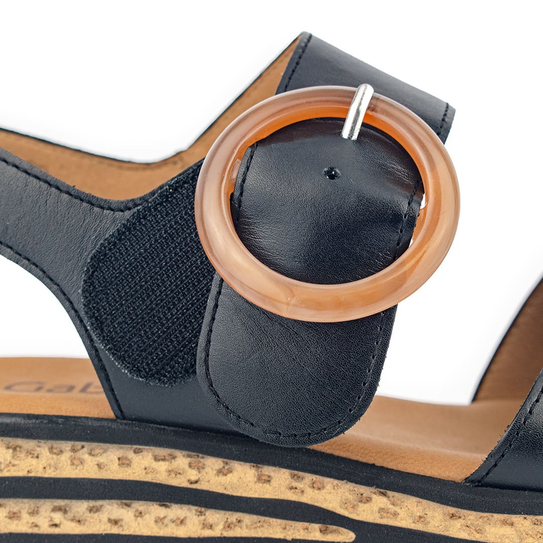 La gran protagonista: una hebilla redonda XL en tono ámbar, que añade un toque retro y original al diseño. Su plantilla acolchada garantiza comodidad prolongada, mientras que la suela con relieve mejora el agarre al caminar.