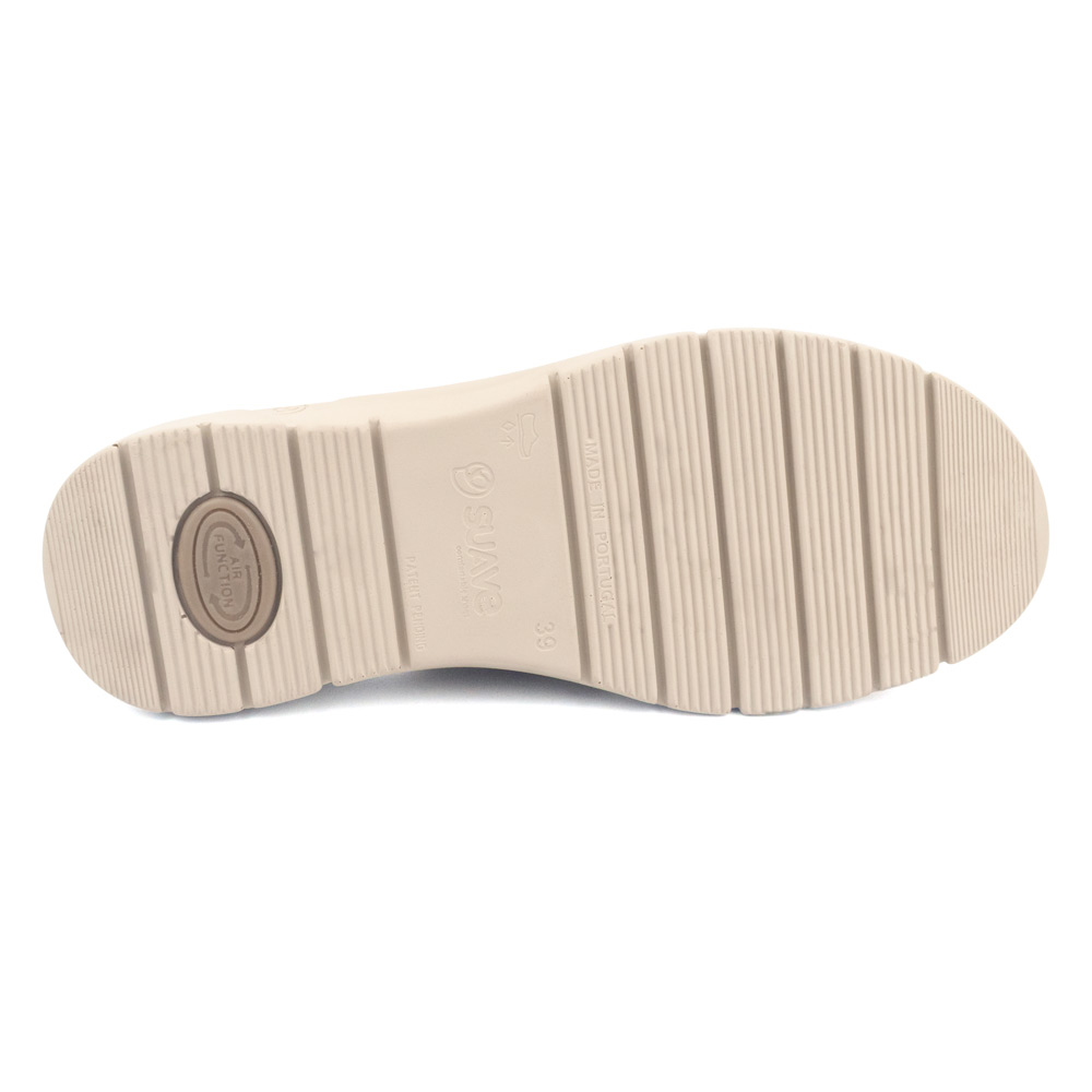Suela Extraligera: Piso de cuña baja microporosa extraligera que destaca por su ligereza y flexibilidad, reduciendo la fatiga articular durante el uso prolongado.