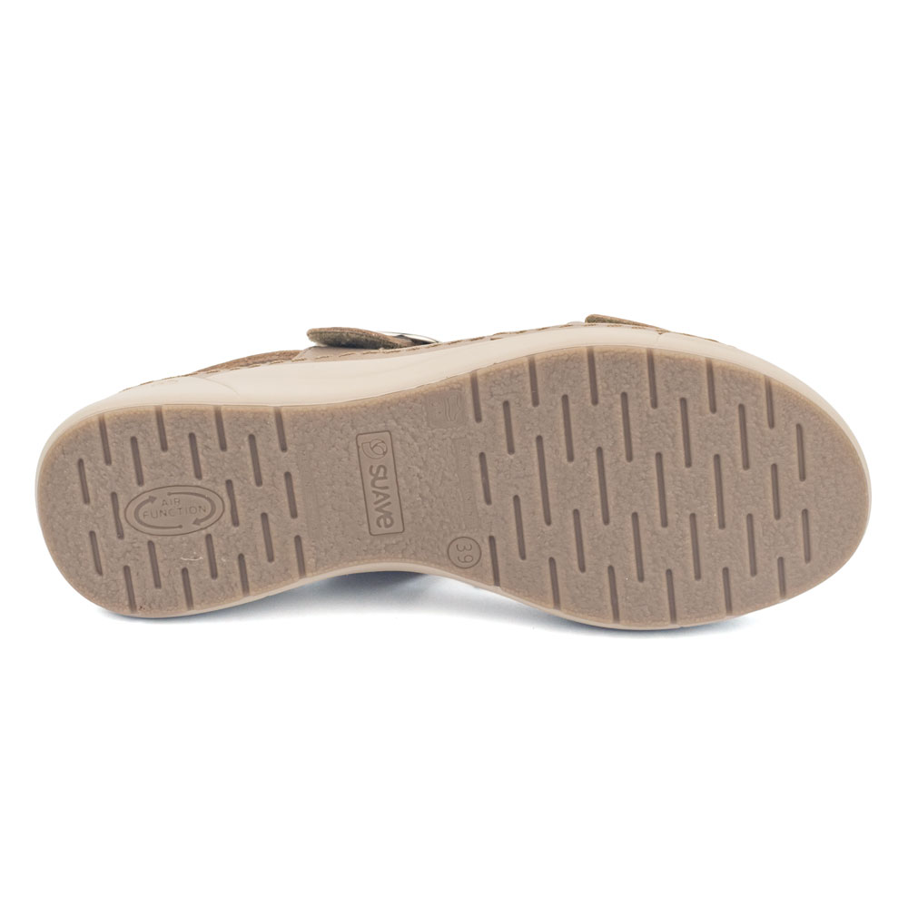 Suela de Cuña Anatómica: Piso de altura media fabricado en material extraligero y flexible, con un diseño de base ancha que asegura una estabilidad total en cada paso.