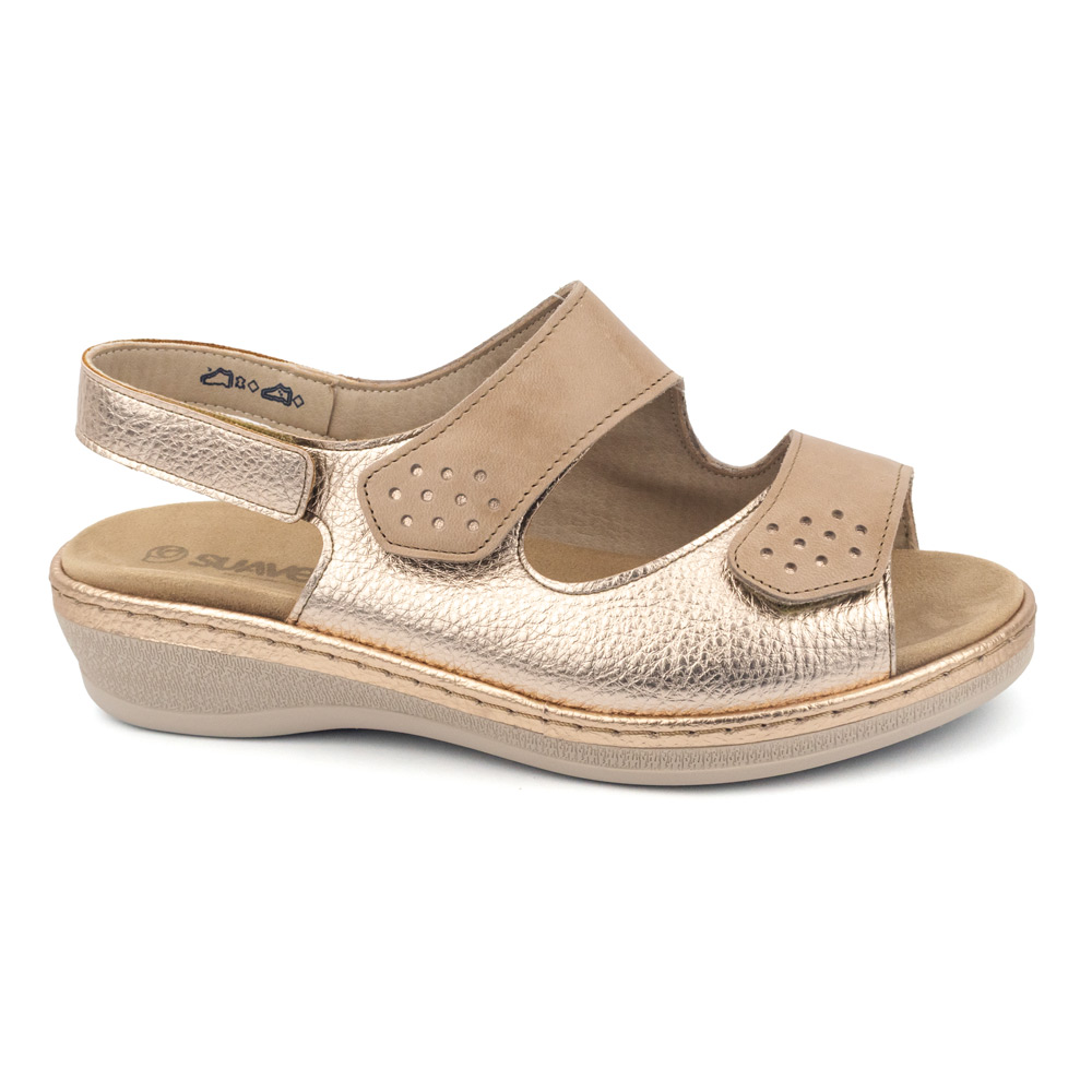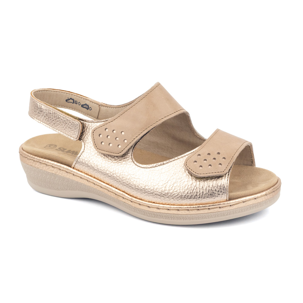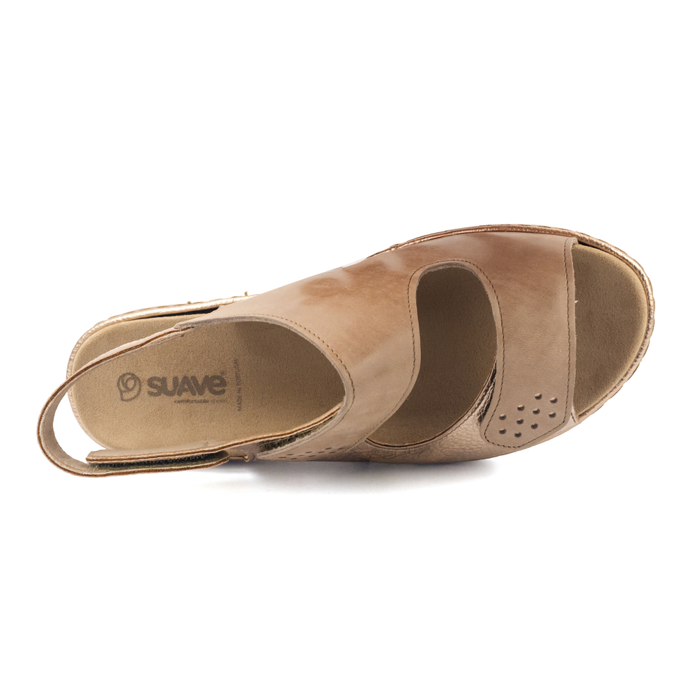 Material de Alta Gama: Confeccionada en piel natural con un acabado texturizado exclusivo en tono arena metalizado, que aporta una estética artesanal y elegante.