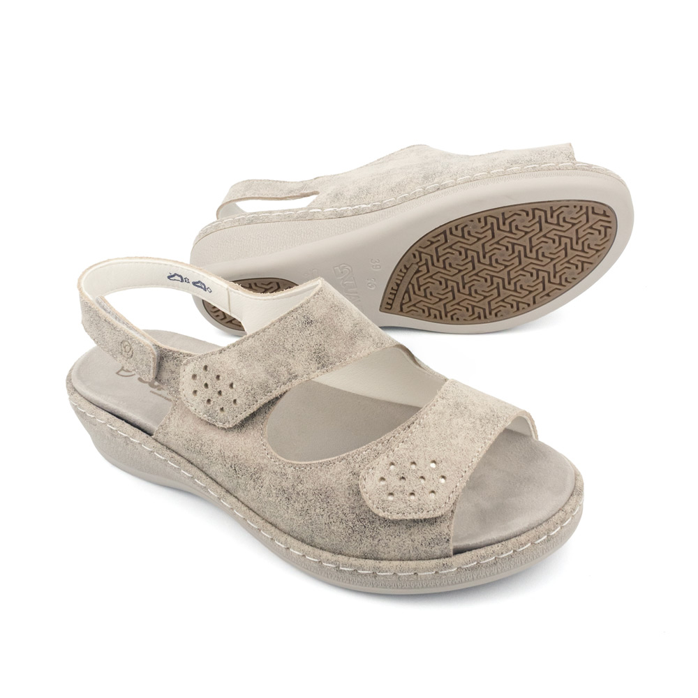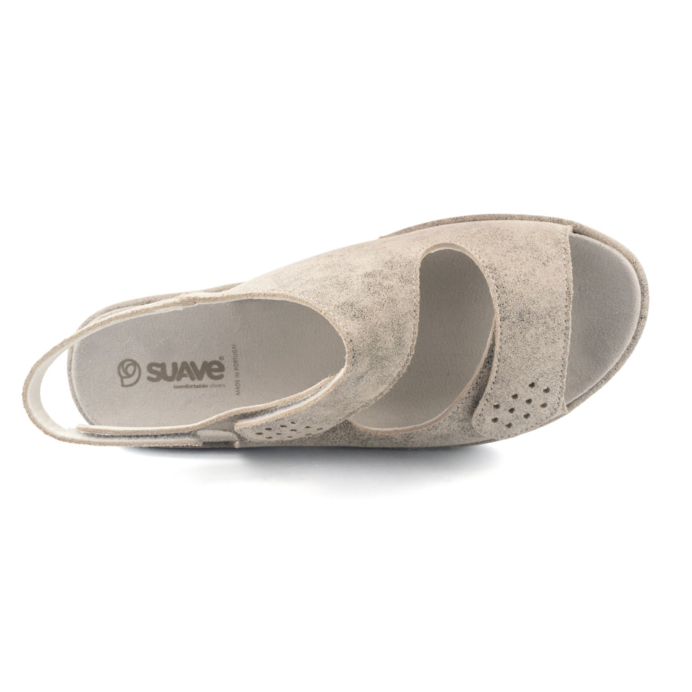 Suela con Soporte de Arco: Piso de cuña baja con diseño anatómico que ofrece un soporte continuo al arco, fabricado en material ligero y flexible para una pisada natural.