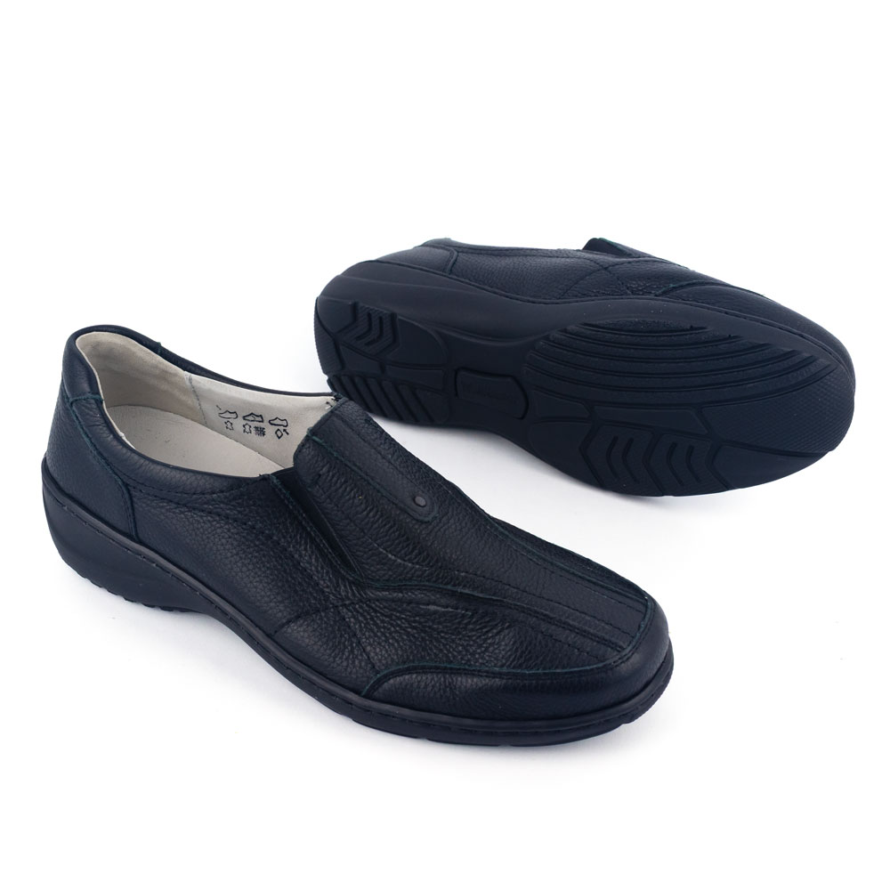 Diseño clásico y funcional para el día a día. Fabricado en piel natural con textura suave, ofrece una sensación de comodidad duradera. Su construcción anatómica con horma H brinda espacio adicional en el antepié, ideal para pies sensibles. Los elásticos laterales permiten un calce fácil y seguro, mientras la plantilla extraíble y suela flexible garantizan una pisada estable y ligera.